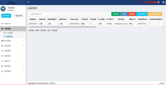 7.新增設(shè)備:選擇設(shè)備管理點(diǎn)擊【新增】,填寫設(shè)備信息,如下圖所示