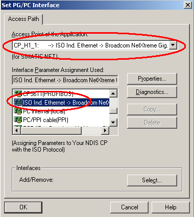 在如圖4.7所示的情況下,在Interface Parameter Assignment Used:選擇ISO Ind Ethernet->實際網卡的名稱。