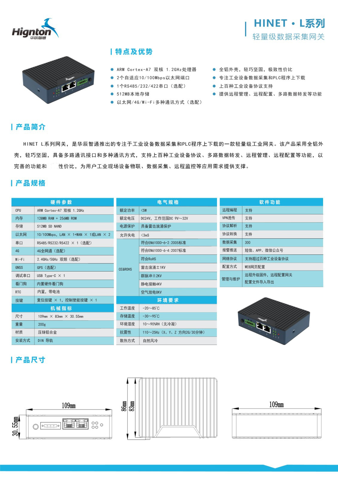 HINET L系列網(wǎng)關(guān),是華辰智通推出的專注于工業(yè)設(shè)備數(shù)據(jù)采集和PLC程序上下載的一款輕量級(jí)工業(yè)網(wǎng)關(guān)。該產(chǎn)品采用全鋁外
