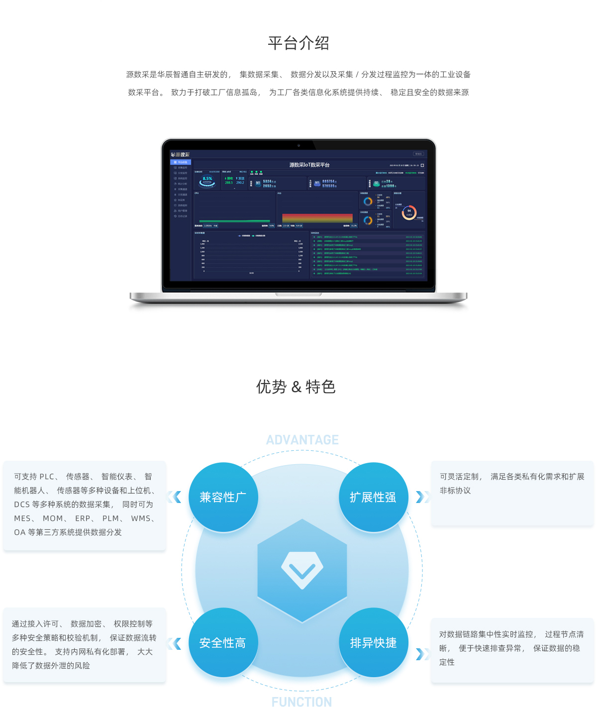 “源數采”是華辰智通自主研發的工業設備數據采集平臺,集數據采集、數據分發以及采集/分發過程監控為一體的私有化IoT數采平臺。致力于打破工廠信息孤島,為工廠各類信息化系統提供持續、穩定且安全的數據來源,為工業企業的智能化轉型提供助力。